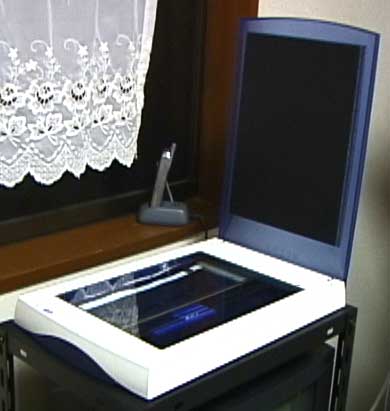 先日NEOS(ネオス)というメーカーのUSB接続タイプA4フラットベッドタイプスキャナを自宅に導入しました。USB接続スキャナは結構ありますが、電源までUSB端子から取るタイプは僕の知る限り2つしかありません。一つはNECのプチスキャンですがこれはA5タイプですのでやや狭すぎます。もう一つがこのARTEC1236USBです。これはA4対応です。電源までUSBから取っているのでスピードが遅いんではないかと心配しましたが、そうでもなかったです。600dpi×1200dpiの解像度で取り込めるそうです。SONYのデジタルビデオカメラのTRV900は35万画素のデジタルカメラとして使えるので写真を撮りましたので掲載します。