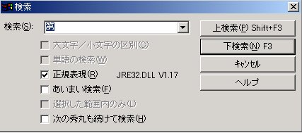 「正規表現」のチェックボックスにチェックを入れる。 |