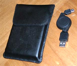 | 右からMDプレーヤー、SpeedzterLittle、MOMO-BAY(whiteバージョン) | SpeedzterLittleのケース(ビニールですが結構かっこいい。)伸縮自在のUSBケーブルもおしゃれです。 | MOMO-BAYの白い革ケース(カッコは最高) |