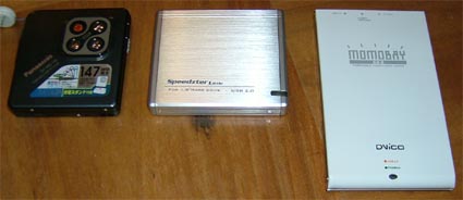 なお、このHDDと以前から僕のお気に入りのMOMO-BAYとMDプレーヤーを並べてみました。大変コンパクトなのがわかると思います。