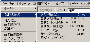 | 図のようなメッセージが出ますから、OKを押します。 | 次に、露出補正を行います。イメージ→色調補正を選びます。 |