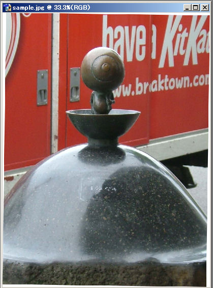 まず、サンプル画像をご覧下さい。これは、先日(2006年9月11日)、鳥取県境港市に旅行した時に撮影した写真です。ここは鬼太郎の作者、水木しげる氏の出身地で、近年、「妖怪の町」として有名です。愛知県からは、セントレア空港から米子空港まで、直通便の飛行機が飛んでいます。米子空港から境港市までは、4kmしか離れていません。その気になれば、日帰りできるわけです。