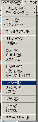 | ツールバーのウインドウ→レイヤーを選択します。 | 図のようなウインドウが開きます。 |