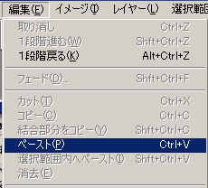 | さきほどAの状態にした、元画像を選択します。 | 編集→ペーストを選択します。 |