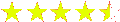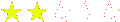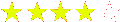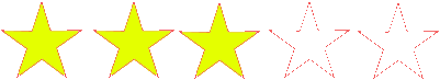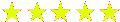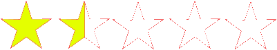 今回、映画紹介コーナーに星5つで評価する方式を導入することにしました。そこで、星が5つ並んだ画像を、ネットで探しましたが、適当な画像が見つかりませんでした。 仕方がないので、自分で作ることにしました。透明背景のGIF画像で点数ごとに、10タイプのGIF画像を作りました。作成にあたって、使用したソフトは、ペイントショップPRO9とフォトショップ7です。 せっかく作ったので、掲示しておきます。もしも、皆さんが自分のHPで似たような評価方法を使うのであれば、ご自由にお使い下さい。 (画像を右クリックして、「名前をつけて画像を保存」を選ぶと、自分のPCにダウンロードできます。)