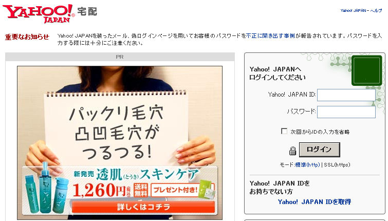 Yahoo!ゆうパックは、Yahoo!JAPAN IDがないと利用できません。持っていない方は、あらかじめ、「Yahoo!JAPAN IDを取得」をクリックして、取得してください。(これは無料で取得できます。)その後、Yahoo!JAPAN IDとパスワードを入力して、ログインします。 |