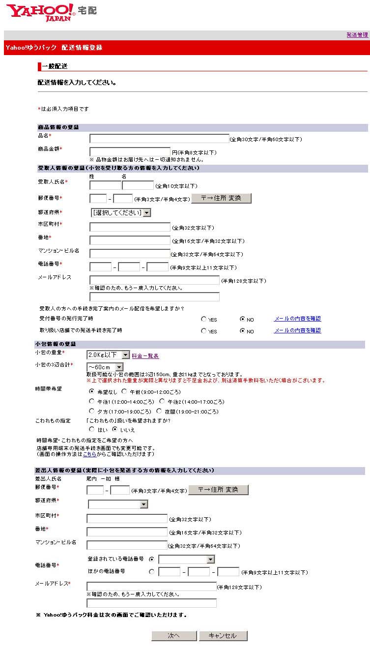 「Yahoo!ゆうパックを利用する」をクリックします。 |