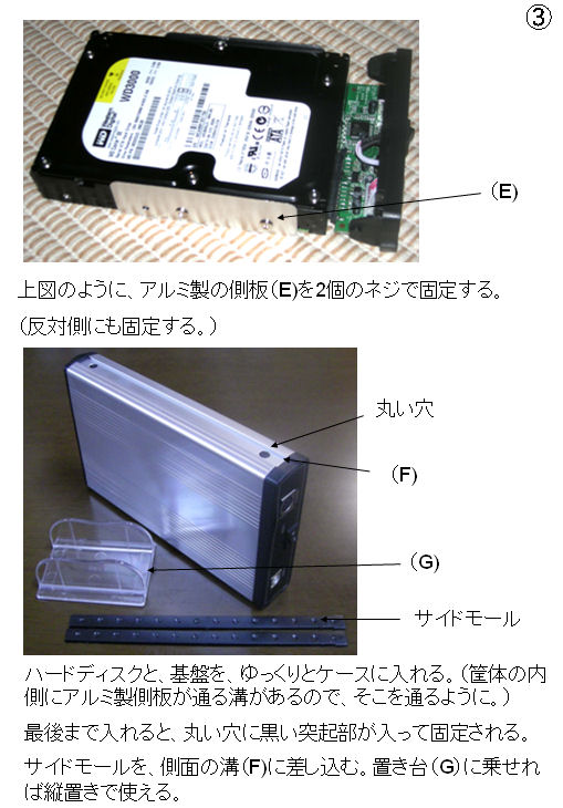 2007年12月に、300GBのHDD(Western Digital WD3000JD-98KLB0(WD Caviar SE))をヤフオクで購入しました。てっきりIDE-HDDだと思っていました。しかし、到着してみると、シリアルATA(SATA)-HDDでした。職場にある、DECA SDHC-350には120GBのIDE-HDD(MAXTOR D540X-4G 5400 RPM 120GB UltraATA/133)が入っています。これと入れ替えようと思っていました。しかし、今さら、返品できません。そこで、SATA-HDD用のハードディスクケースを新たに購入することにしました。以前、第334夜と第335夜で、SATA-HDDを外付けにするアダプタ(グリーンハウス GH-USHD-SATA)とハードディスクケース(裸族の弁当箱)のペアを紹介しました。同じものも考えましたが、電源スイッチがないこと、2つ買うと結局高くつくこと、ほこりが気になること、など考慮し、オーソドックスなハードディスクケースを探しました。すると、玄人志向から、安価な製品が発売されていました。それが、玄蔵 GW3.5AI-SU2でした。購入してみて、以前買った、IDE-HDD用のハードディスクケース(DECA SDHC-350)とほぼ同じ構造であることが判明しました。そこで、この際、2つとも組み立て方法を紹介することにしました。
