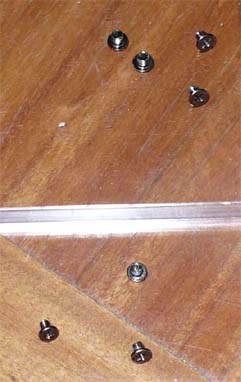 下の3つのネジが、HDDボックスのカバーとHDDを固定しているネジです。上の4つは、HDDをHDDカバーに固定しているネジです。この2種類のネジはサイズが異なります。混ぜないように注意してください。(ドライバも使い分けることをお勧めします。) |