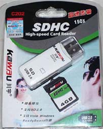 | まず、外付けSD・SDHCカードリーダーを使った場合です。 (右の写真が、実験に使ったカードリーダーです。) |