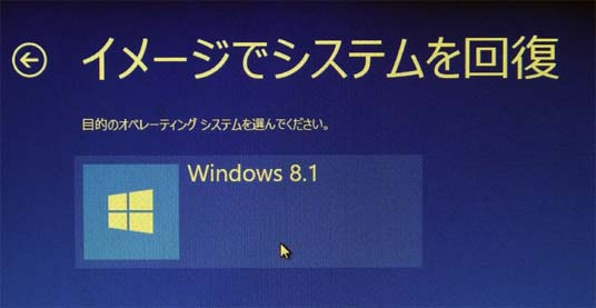 次夜で解説するシステムイメージから、レストアする場合、「イメージでシステムを回復」を選びます。 |