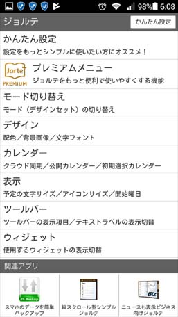 一番上が「Phone」となっています。この状態で入力すると、ジョルテ・クラウドとはリンクしません。「Phone」の右側の下向きの矢印をクリックして、「マイカレンダー」に変更してから入力するとうまくリンクできることがわかりました。 デフォルトでここが「マイカレンダー」になるようにする方法もわかりました。 さきほどの1. の画面の右下にある、「設定」ボタンを押すと次の画面が開きます。 |