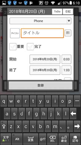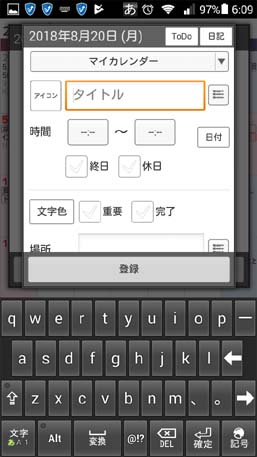 以前、PCのジョルテ・クラウドとうまくリンクできなかった頃に新しい予定を入力していた方法。 左の画面で新規予定を入れたい日付をクリックすると次の画面が開きます。 |