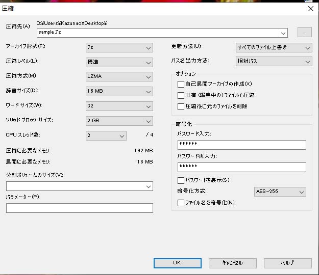これを、7-Zipで圧縮する際に、暗号化オプションにパスワードを入力します。