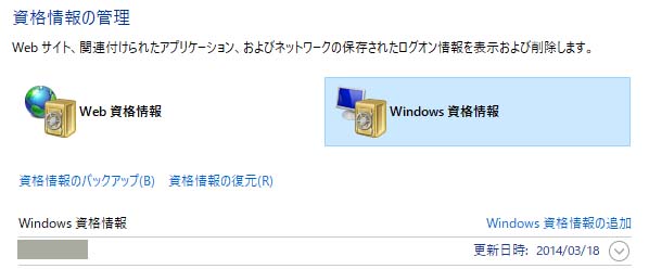 まず、コントロールパネルを開きます。ちなみにWindows10になってから、コントロールパネルを開くのが大変になりました。デスクトップにある、「PC」アイコンで右クリックして、プロパティを選択します。左上の方に、「コントロールパネルホーム」という文字列があるので、これをクリックするとコントロールパネルが開きます。コントロールパネル→「資格情報マネージャー」をクリックします。 次に「Windows資格情報」のタブをクリックします。(図1)「Windows資格情報の追加」をクリックすると、ネットワーク上のPC名、ユーザー名、パスワードを入力する画面が開くので、ここに入力し 、「OK」をクリックすれば完了です。(図2)
