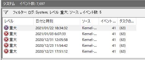 第505夜で書いたKP41問題というやつです。 具体的には下図のように、12月21日、23日、31日、1月3日、1月22日に発生しました。