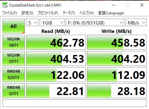 Crystal Disk Markで速度を測定しました。 すると、次の結果が出ました。