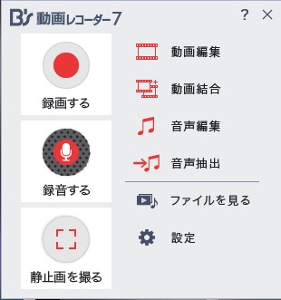 さて、僕が動画キャプチャーソフトとして「B's 動画レコーダー 7」を愛用する理由ですが、それはタイマー機能です。 まず起動すると次の画面が開きます。