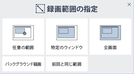 「録画する」というボタンをクリックすると、次のように録画範囲設定メニューが出ます。