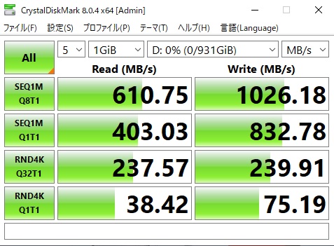 <補足>なお、注意することとして、ケーブルがあります。Thuderbolt 4規格に準じたケーブルを使わないと期待した速度は出ません。したがって、新たにケーブル(USB-IF認証取得 USB4 ケーブル USB Type C ケーブル 対応 Thunderbolt 4 ケーブル 40Gbps高速転送 100W/5A 急速充電 8K@60Hz / 2つ4K@60Hz映像出力 Thunderbolt 3と下位互換(1M))(CABLETIME CT-USB4-AG)も購入しています。これが実に高価なのです。今、amazonで値段を見たら、長さ1mケーブルで3299円(!)でした。足元を見ているという か、何というか。