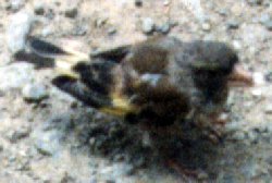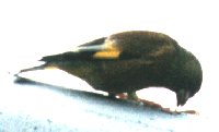 平成11年4月に入ってカワラヒワが我が家の庭にやって来るようになりました。 ひまわりの種を主に食べるそうです。くちばしでひまわりの種をくるくる回してから食べるそうです。 (1999年4月17日、我が家の庭にて、ミノルタα303i+300mm望遠使用)