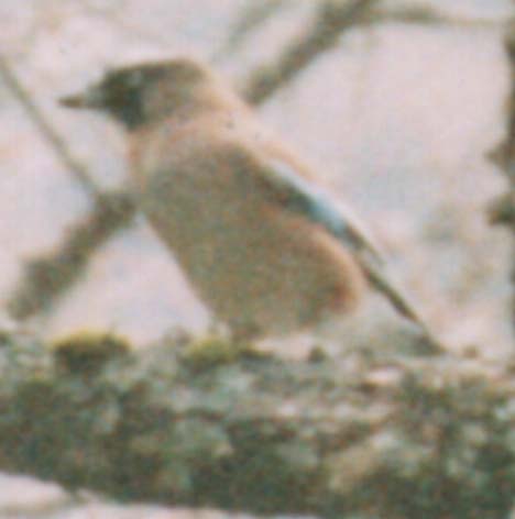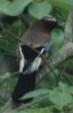 | 2001年4月30日上高地にて。(ミノルタα303i+300mm望遠レンズ使用)上高地にて、何だかわからずに撮影していましたが、帰宅して引き延ばしたところあこがれのカケスが映っていてびっくりでした。 | 2001年4月30日上高地にて。(ミノルタα303i+300mm望遠レンズ使用) |