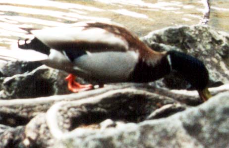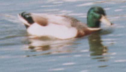 1999年1月16日(土)船越堤公園の池を泳いでいるところを撮影しました。ミノルタα303iに70mm〜300mmの望遠ズームレンズを付けた一眼レフカメラを使用しています。ちょっと手ぶれしています。♂はかなり派手な色合いです。(マガモ♂)