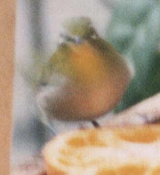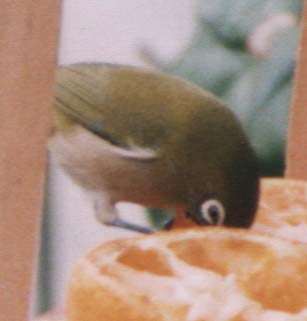 奥さんに言わせるとめじろが一番人なつっこくて逃げないので写真撮影が簡単とのことです。最初の4枚は1998年11月〜12月我が家の餌台に初めて乗った鳥として撮影しました。最後の1枚は1999年1月15日の撮影です。 みかんが好きです。うちの餌台に入ってきて食べます。 (最初の4枚はミノルタα303i+210mm望遠レンズ使用、最後の1枚は300mm望遠レンズ使用)