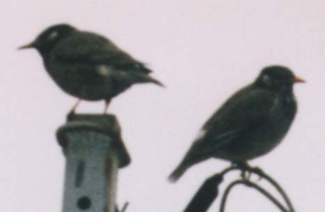 5〜6羽の集団で飛来します。パンが好きらしいです。けっこう大柄な鳥です。最初の1枚は1998年11月に我が家の庭に飛来したときに210mmレンズで撮影したものです。後半の3枚は1999年1月15日に300mm望遠にて撮影しました。けっこう遠くても細かい羽の模様まで識別できます。みかんを食べます。