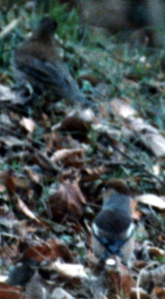 1999年1月16日(土)船越堤公園の山の林の中でつがいで遊んでいるところを撮影しました。後ろ姿から「シメ」と写真判定したそうです。