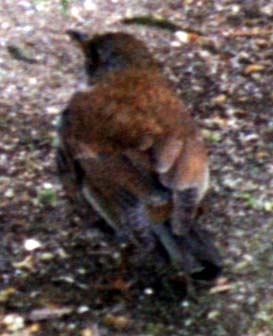 シロハラは奥さんの実家の庭で土を足で掻き虫を捕っていました。