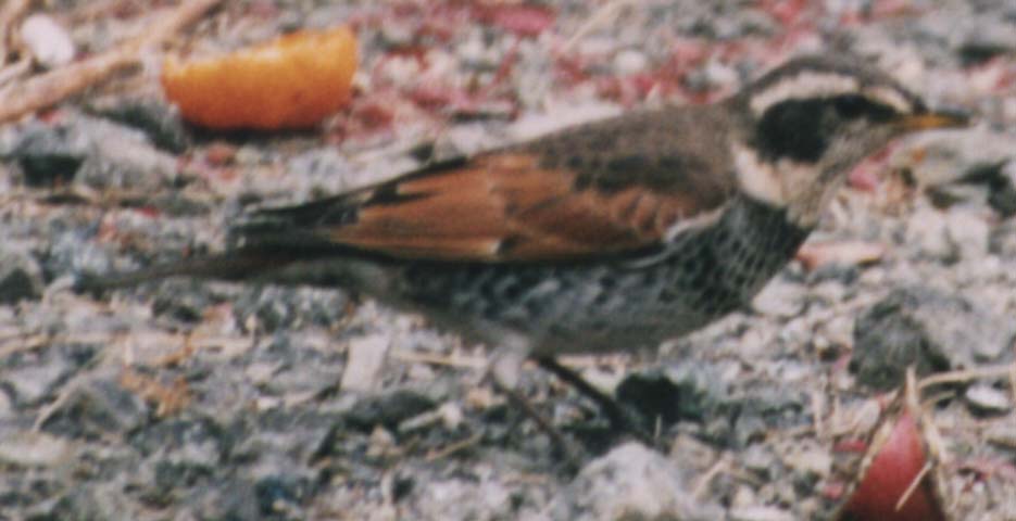 スズメと混じって1羽のみで行動します。ときどき空を見てぼーっとしています。しかし船越堤公園ではけっこう群をなして飛んでいました。4枚とも我が家の庭です。最初の3枚は1998年12月210mm望遠レンズで撮影しました。最後の1枚は1999年1月15日300mm望遠レンズで撮影しました。 パン屑、パンの耳を食べます。